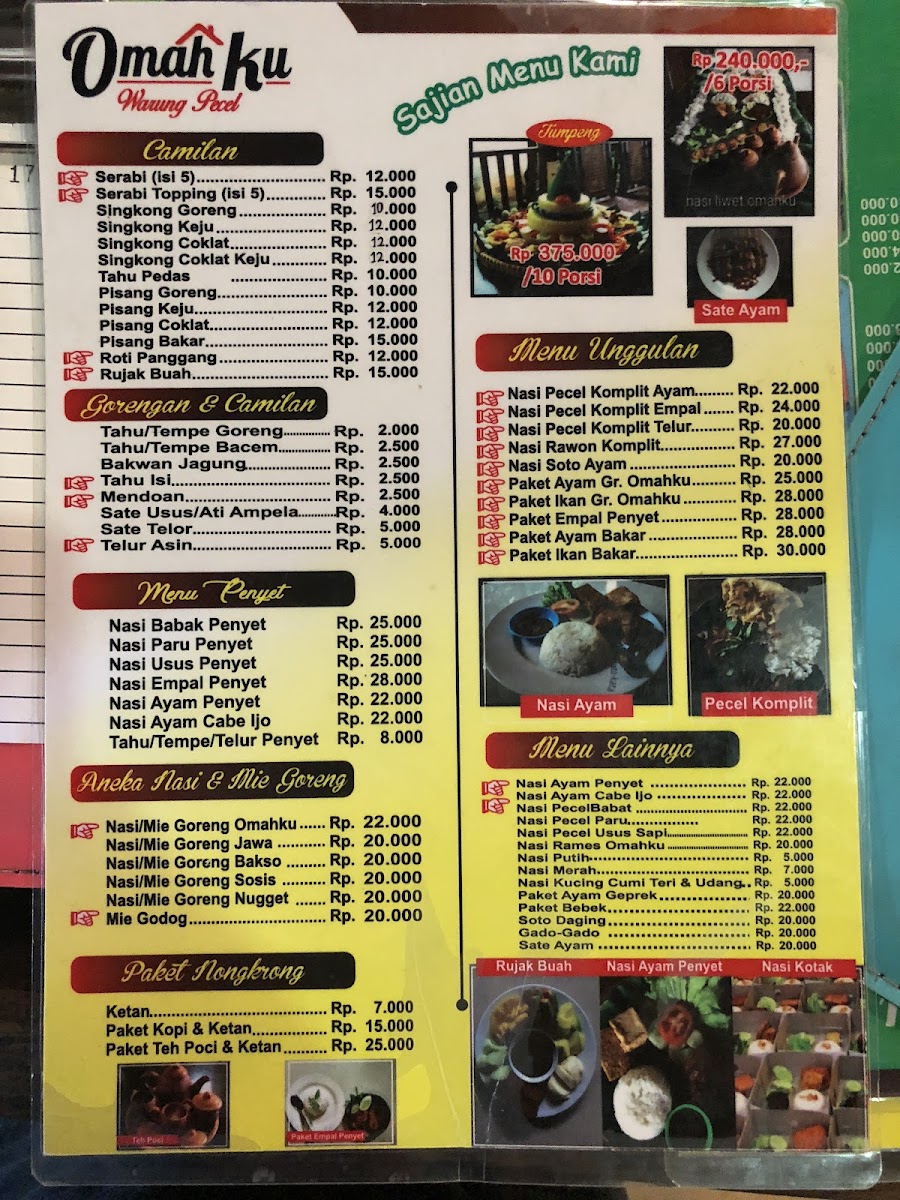 The menu at Angkringan Omahku showcases a delightful blend of traditional Indonesian street food with a focus on bold, comforting flavors. Among the highlights, Sate Usus stands out with its perfectly grilled chicken intestines, seasoned just right to achieve a savory, slightly smoky taste that pairs wonderfully with the accompanying dipping sauce. Another must-try is Ayam Penyet, tender fried chicken smashed to perfection and served with spicy sambal that elevates each bite. Beyond these signature dishes, the menu offers a variety of other classic snacks and small plates, from simple fried tempeh to flavorful skewers, all reasonably priced and reflecting authentic homestyle cooking. The careful attention to seasoning and presentation ensures that every dish is both satisfying and memorable, making Angkringan Omahku a go-to spot for anyone seeking a true taste of Indonesian comfort food. The combination of traditional recipes and consistent quality cements its reputation as a charming eatery that delivers both taste and value.